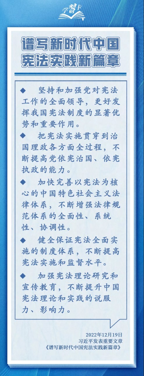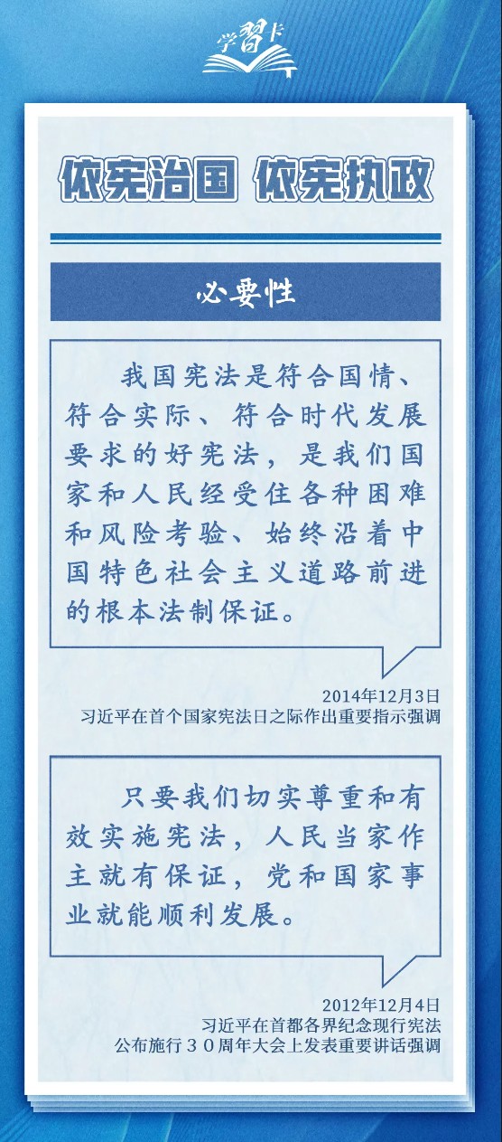 围绕依宪治国、依宪执政,习近平总书记多次在不同场合强调,宪法是党和人民意志的集中体现,丰富和发展了中国特色社会主义法治理论,也为推进国家治理体系和治理能力现代化指明了根本路径和努力方向。一起学习——