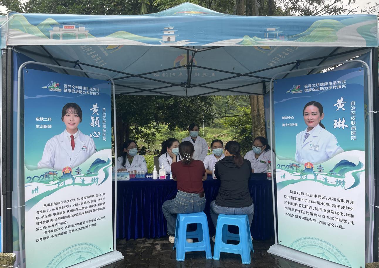 金秋送爽,丹桂飘香,9月24日-26日,为大力倡导健康文明生活方式,不断提升群众健康素养和健康水平,我院积极参加由自治区卫生健康委员会等多部门联合举办“健康中国行暨健康八桂行”主题宣传服务走进靖西系列活动。院党委副书记李广山带领皮肤科专家、健康科普宣讲团成员一行11人参加。