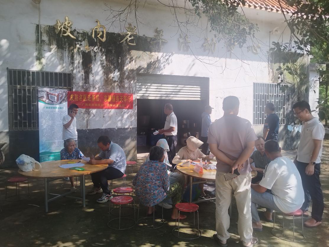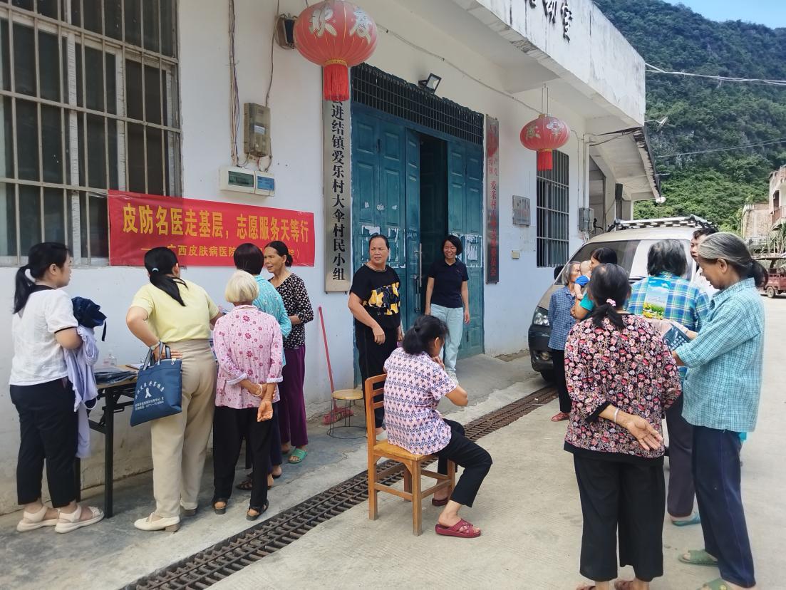 为深化落实国家优质医疗资源向基层下沉政策,推动我院辐射引领全区皮肤病防治学科发展力度,结合崇左市天等县麻风病防治工作现状和需求,2025年9月17-18日,我院联合崇左市第二人民医院、天等县疾病预防控制中心前往天等县进结镇爱乐村大伞屯等10个村屯开展“皮防名医走基层,志愿服务天等行”公益义诊活动。